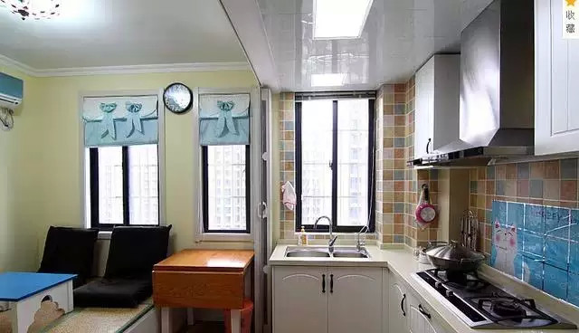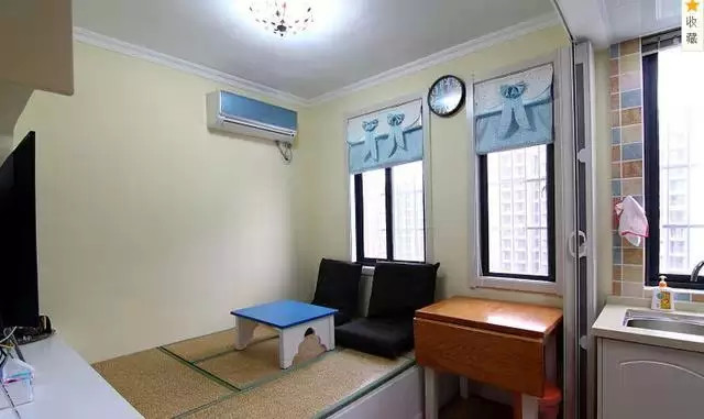 1.把原來的次臥做了榻榻米,并與廚房形成開放式空間,用推拉門分隔,平時可以作為休閑區域,有客人的時候,拉起推拉門就是一個小房間。