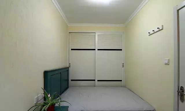 最后,是這個隔出來的小房間。由于要放過道,所以里面的寬度實在是有點窄,只能放下床的寬度,到衣柜拿東西要在床上拿的,窗臺邊的書桌還沒有買